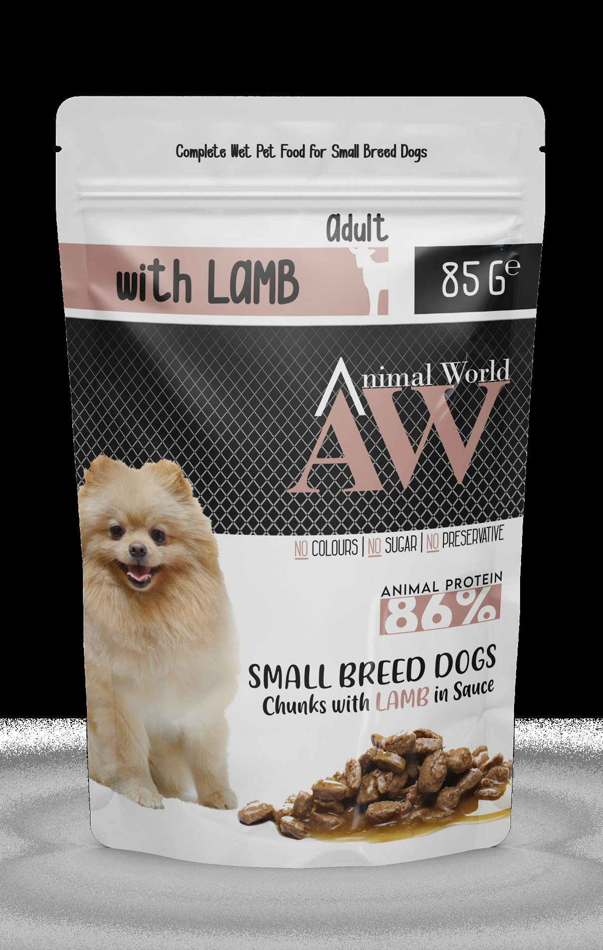 Animal World Küçük Irk Soslu Kuzu Etli Köpek Konservesi 85 gr