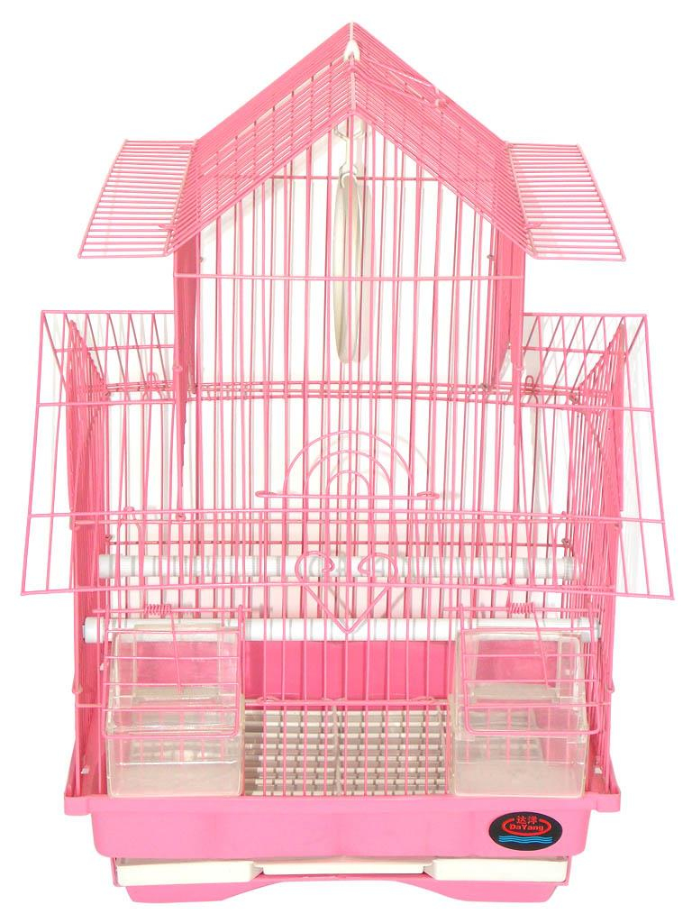 2 adet şeffaf plastik yemlik ve 2 adet plastik tünek ile beraber 1 adet plastik kuş halkası içeren renkli çinevi kafes.