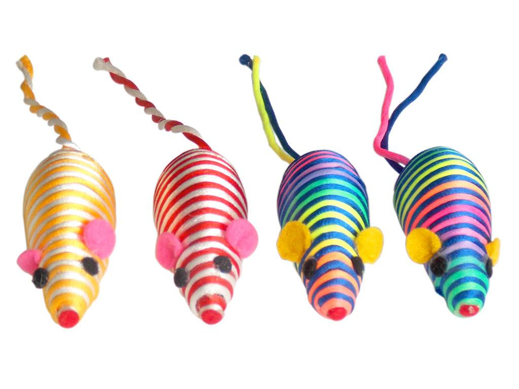 8 cm uzunluğunda renkli ip sarılarak üretilmiş 4 farklı renkte oyuncak fareler