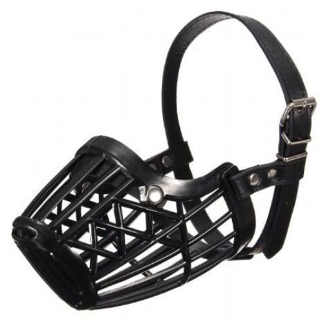 Köpekler için, ısırma ve sokaklarda yabancı cisim yemesini önleyen, plastik burunluk deri kayışlı ağızlık.