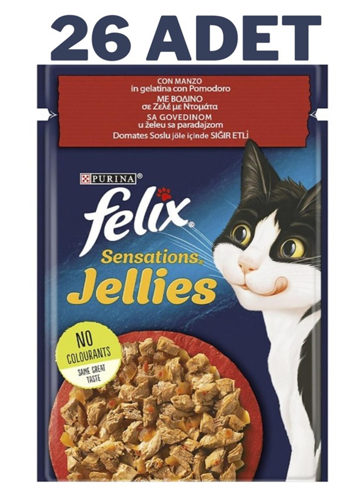 Felix Sensation Sığır Etli ve Domatesli Jel Kedi Konservesi Pouch 26x85 Gr