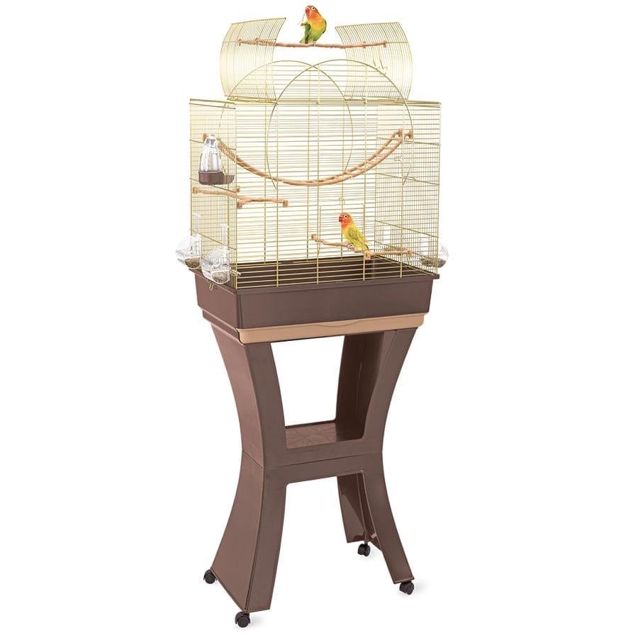 IMAC Matilde Ayaklı Kuş Kafesi, şık kahve/gold rengi ve sağlam ayaklı yapısıyla dikkat çeker. Geniş iç hacmiyle kuşlar için konforlu bir yaşam alanı sunar. Ölçüler: 58x38x71/143 cm.