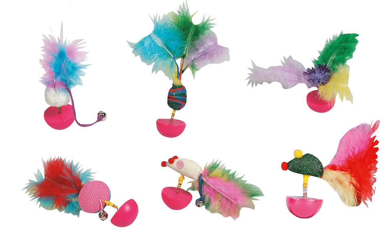 Renkli tüylü, hacıyatmaz kedi oyuncağı. 12 cm yükseklik. 3,5 cm çap.