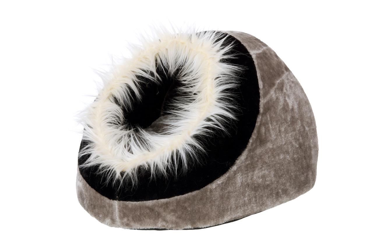 Küçük köpekler, yavru köpekler ve kediler için yumuşak materyalden imal yuva. 30 derecede yıkanabilir. 40x40x28 cm. Siyah-Gri.