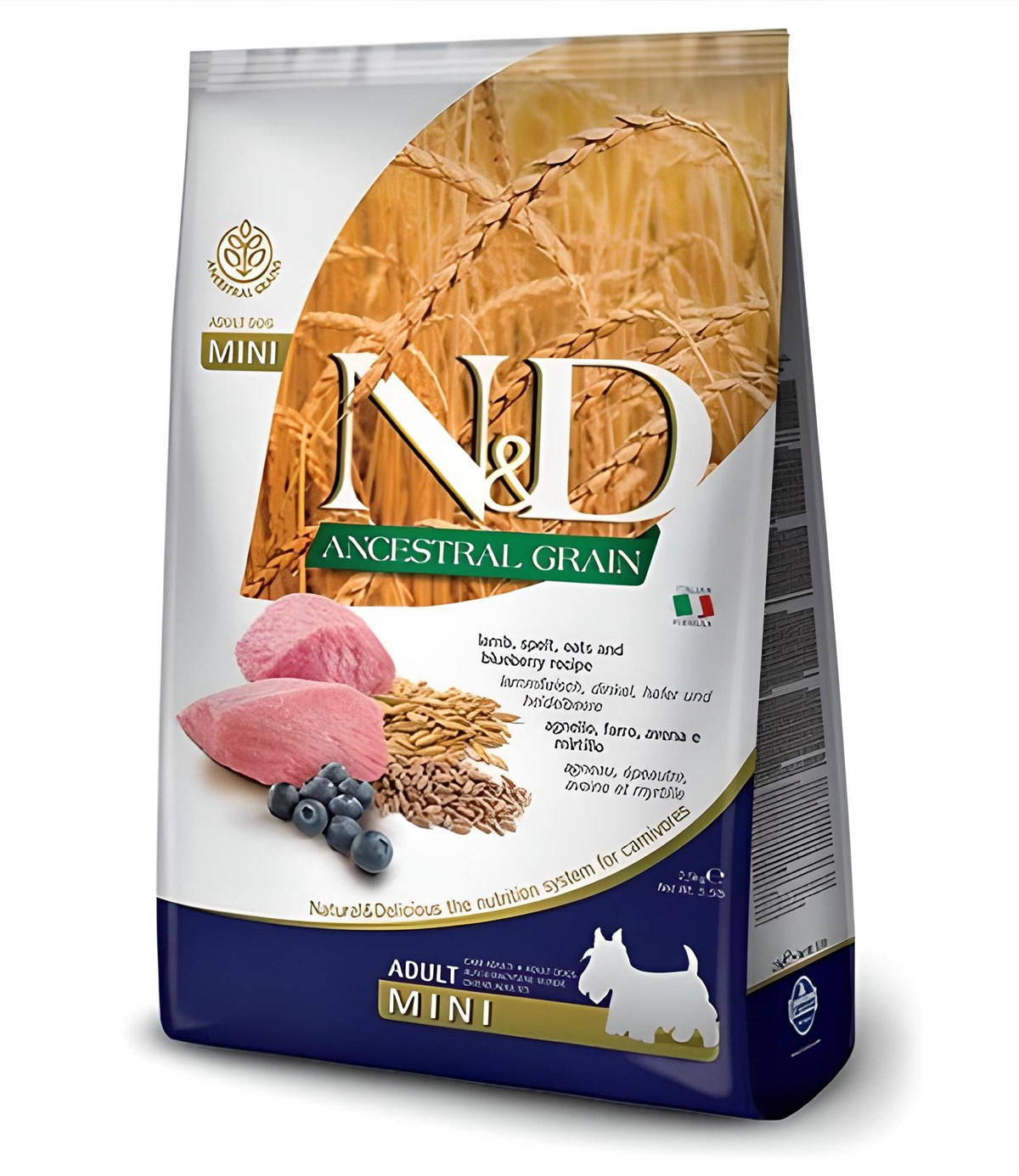 N&D Ancestral Grain Düşük Tahıllı Kuzulu ve Yaban Mersinli Küçük Irk Yetişkin Kuru Köpek Maması