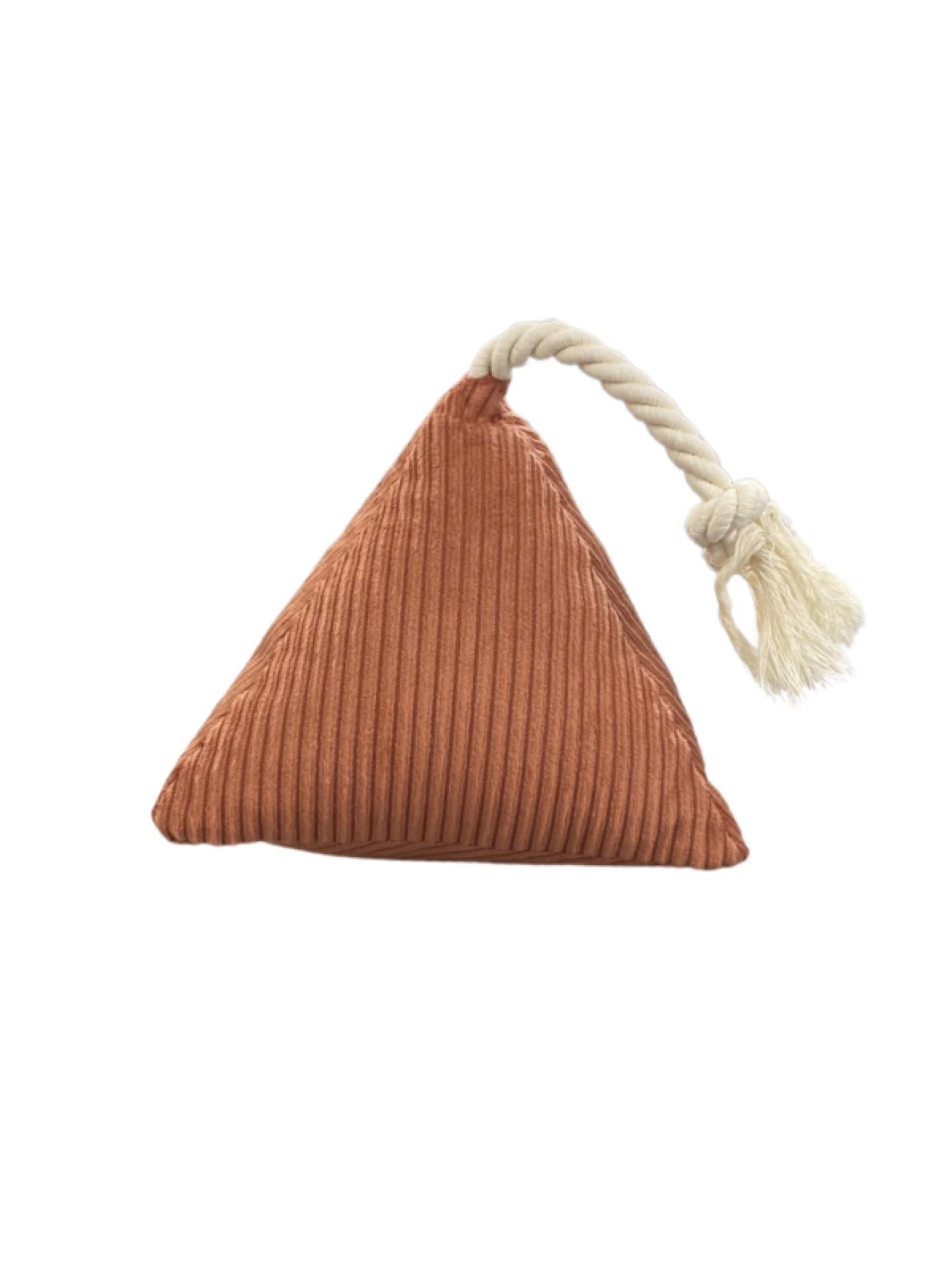 Piramit şeklinde içi elyaf dolu, ucunda oyun ipi bulunan köpek oyuncağıdır. Parçalanıp yutulursa dışkı ile birlikte kolay ve bağırsaklara zarar vermeden atılabilir. Bu oyuncak ile oynarken aynı zamanda köpeğinizin dişleride temizlenecektir. Çamaşır makinasında 30C de yıkanabilir. Oyun bitimi oyuncağı köpeğinizin önünden alınız, oyuncak ile yalnız bırakmayınız.