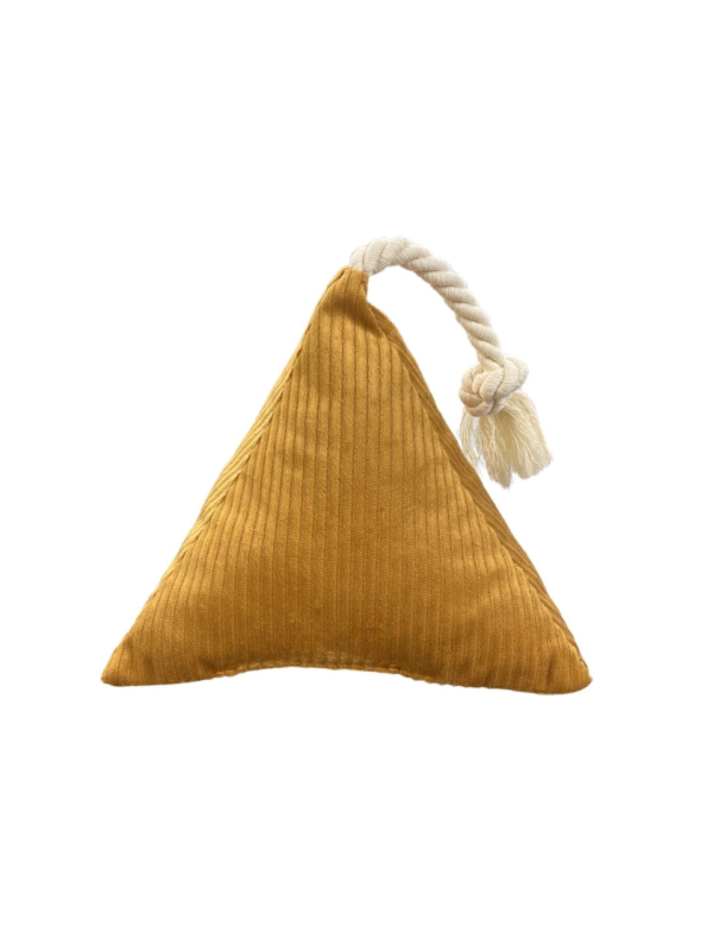 Piramit şeklinde içi elyaf dolu, ucunda oyun ipi bulunan köpek oyuncağıdır. Parçalanıp yutulursa dışkı ile birlikte kolay ve bağırsaklara zarar vermeden atılabilir. Bu oyuncak ile oynarken aynı zamanda köpeğinizin dişleride temizlenecektir. Çamaşır makinasında 30C de yıkanabilir. Oyun bitimi oyuncağı köpeğinizin önünden alınız, oyuncak ile yalnız bırakmayınız.