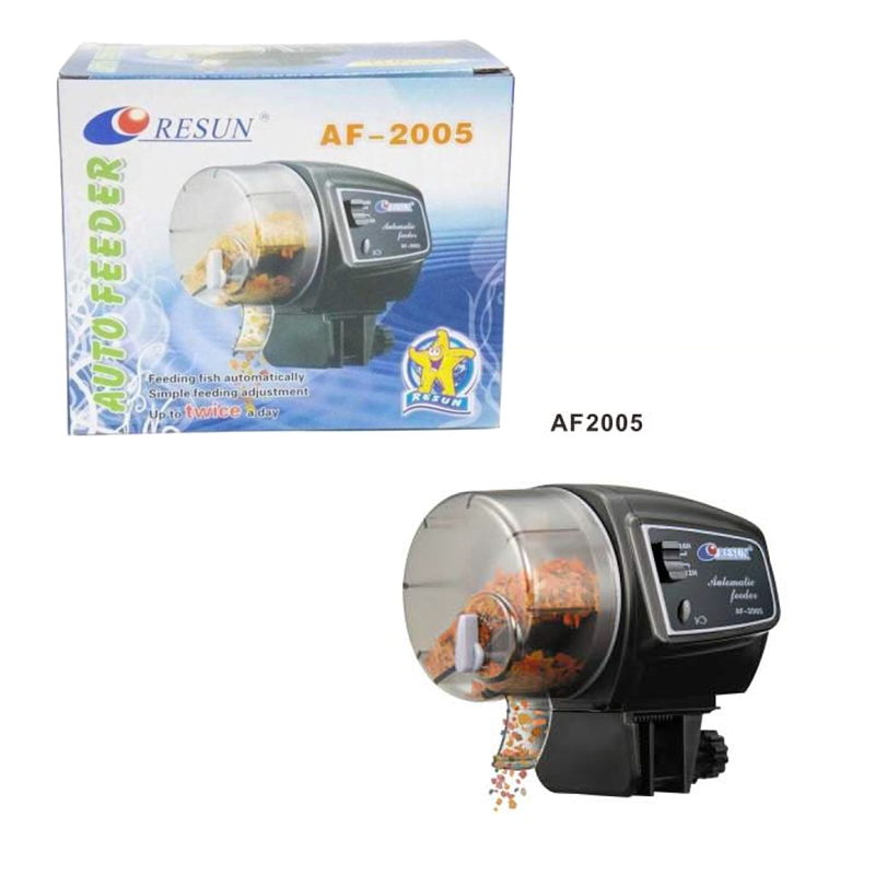 Resun AF-2005 Otomatik Yemleme Makinası 12 ila 24 saat yem ayarı yapılabilen, 2 adet kalem pille çalışan. Akvaryum kenarına kolaylıkla monte edilebilen, manuel ayar yapılabilen, otomatik yemleme makinası