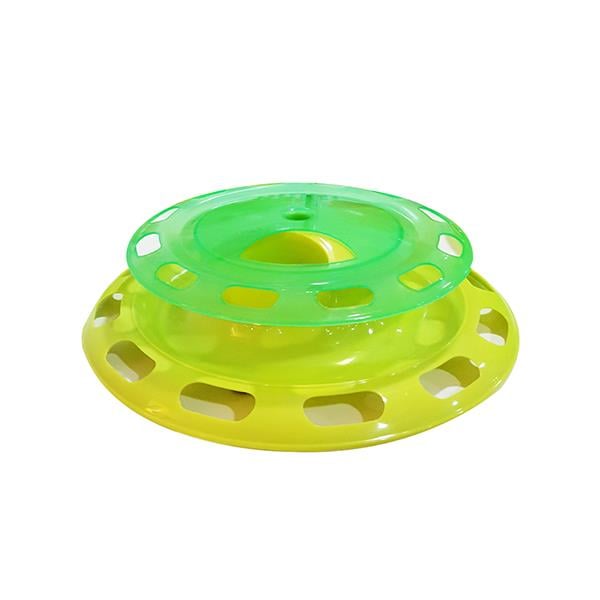 * 1 adet plastik top bulunmaktadır.* Çemberin içerisinde dönen top, 4 cm çapındadır.* Renkli plastik malzemeden yapılmıştır.* Kaymayı önleyen ayakları vardır.* Çember 24 cm çapında-nbsp;5 cm yüksekliğindedir.*Üst kısımda 2 adet mama veya ödül konabilecek alan vardır.