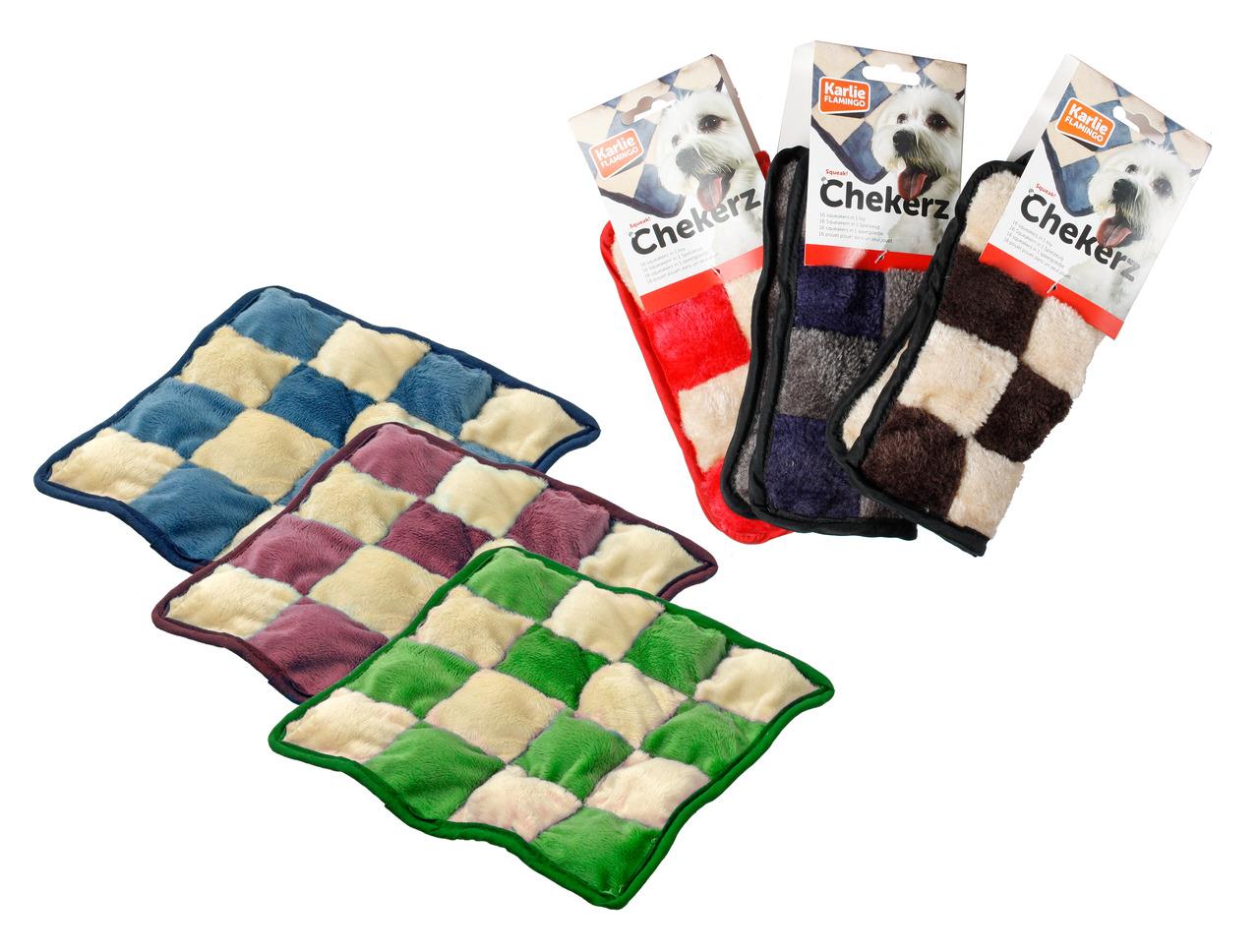 İçinde 16 adet düdük bulunmaktadır. Köpeğinizin saatlerce, yorulmadan, bıkmadan oynayacağı bir oyuncak! Peluş malzemeden imal ve dayanıklı. At-getir oyuncağı olarak da kulanılabilir. Çeşitli renklerde. 22x22 cm.